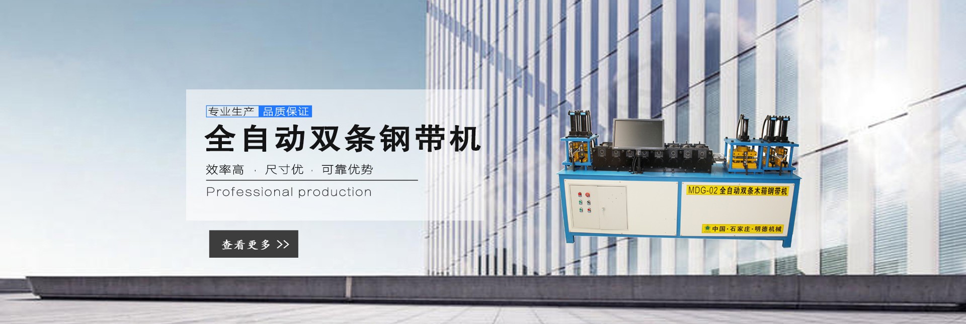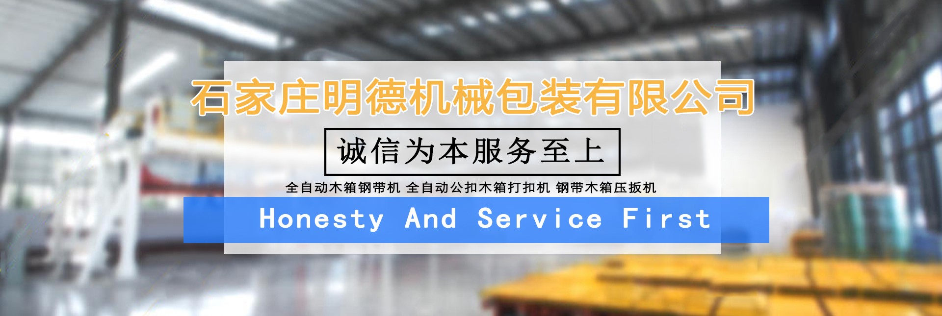 石家莊明德包裝機(jī)械有限公司是國(guó)內(nèi)專(zhuān)業(yè)生產(chǎn)木全自動(dòng)木箱鋼帶機(jī)、半自動(dòng)公母扣木箱打扣機(jī)、全自動(dòng)雙排孔定長(zhǎng)切斷機(jī)、美式托盤(pán)打釘機(jī)械、托盤(pán)刨槽機(jī)、倒角機(jī)、木包裝箱、木托盤(pán)的生產(chǎn)廠(chǎng)家。